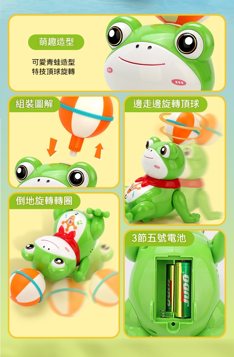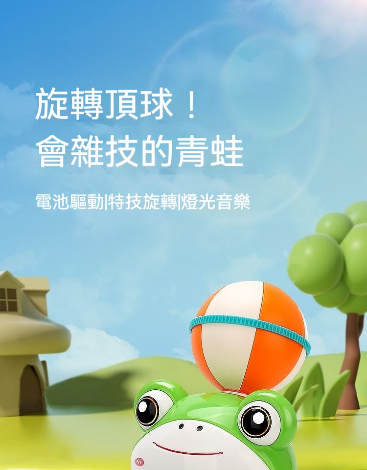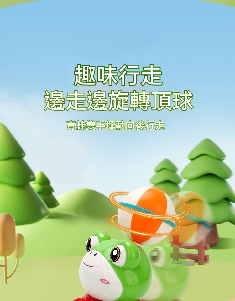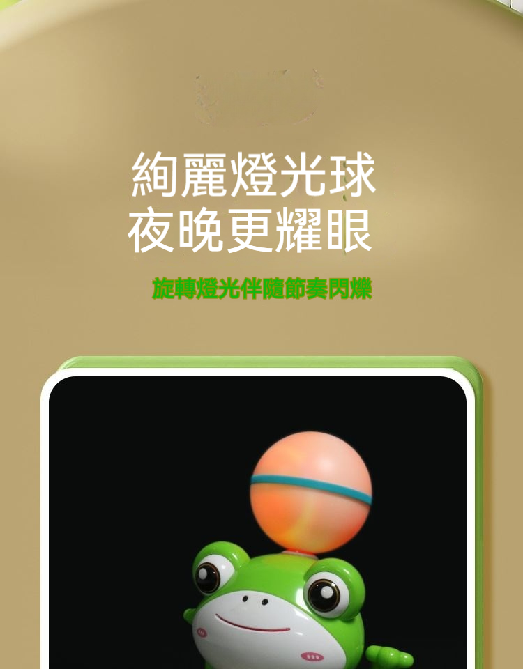 「會頂球的魔法蛙!這隻青蛙讓囝仔爬在後面追~⚡」頭頂小球轉啊轉,七彩燈光閃啊閃✨還會發出呱呱聲+輕快音樂,囡仔看了爬嘎緊嘟嘟!✨