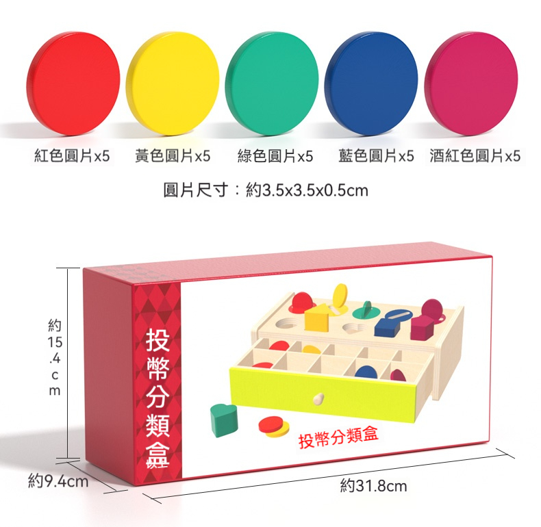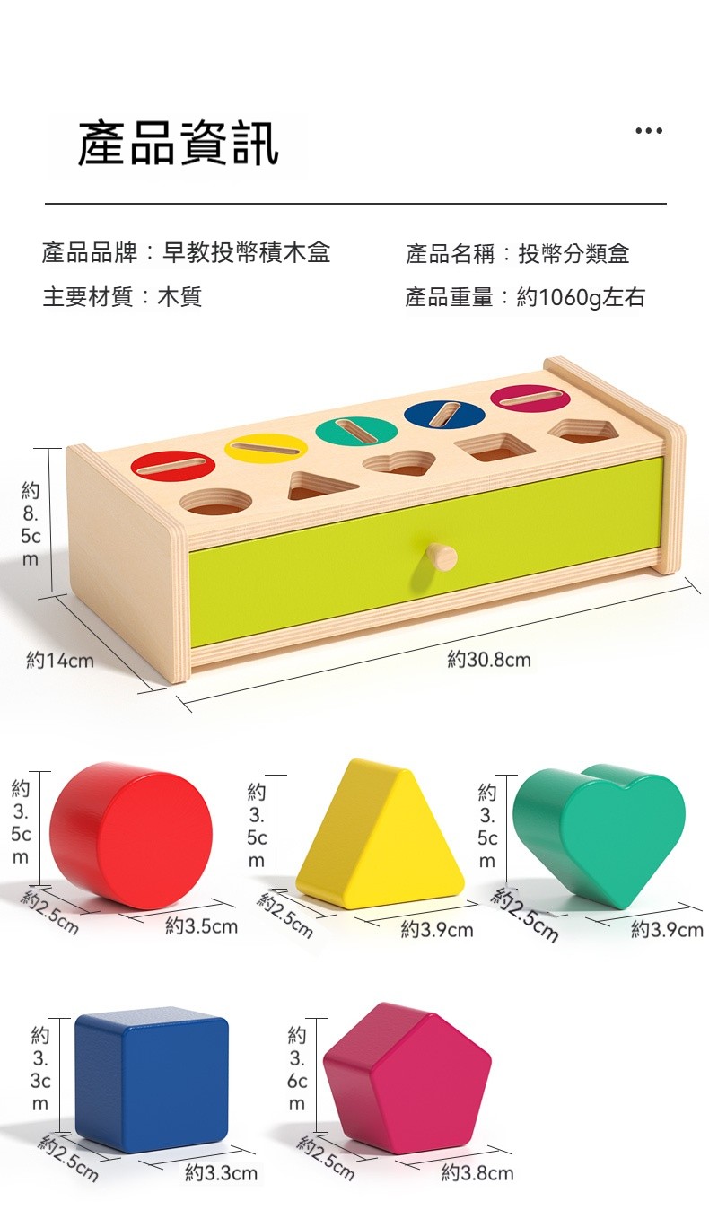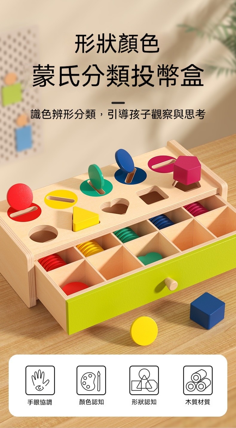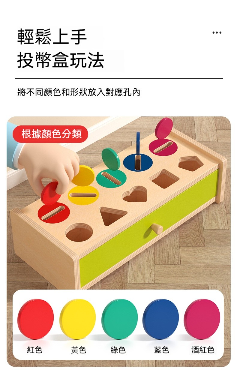 「✨蒙氏投幣盒來囉!這盒讓囝仔玩到變聰明,顏色形狀攏總記牢牢~」✨練手眼協調~培養專注力✨學顏色形狀~認知發展大進步✨安全木材~無毒塗料媽媽免煩惱