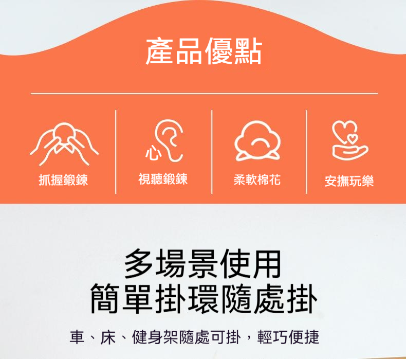 【✨寶寶安撫魔法掛鈴|推車、汽座、嬰兒床攏總適用!囡仔笑咪咪~媽咪得輕鬆✨】✨醫療級矽膠牙膠,啃咬嘛免驚,強力安全掛勾,怎麼搖都不掉落✨