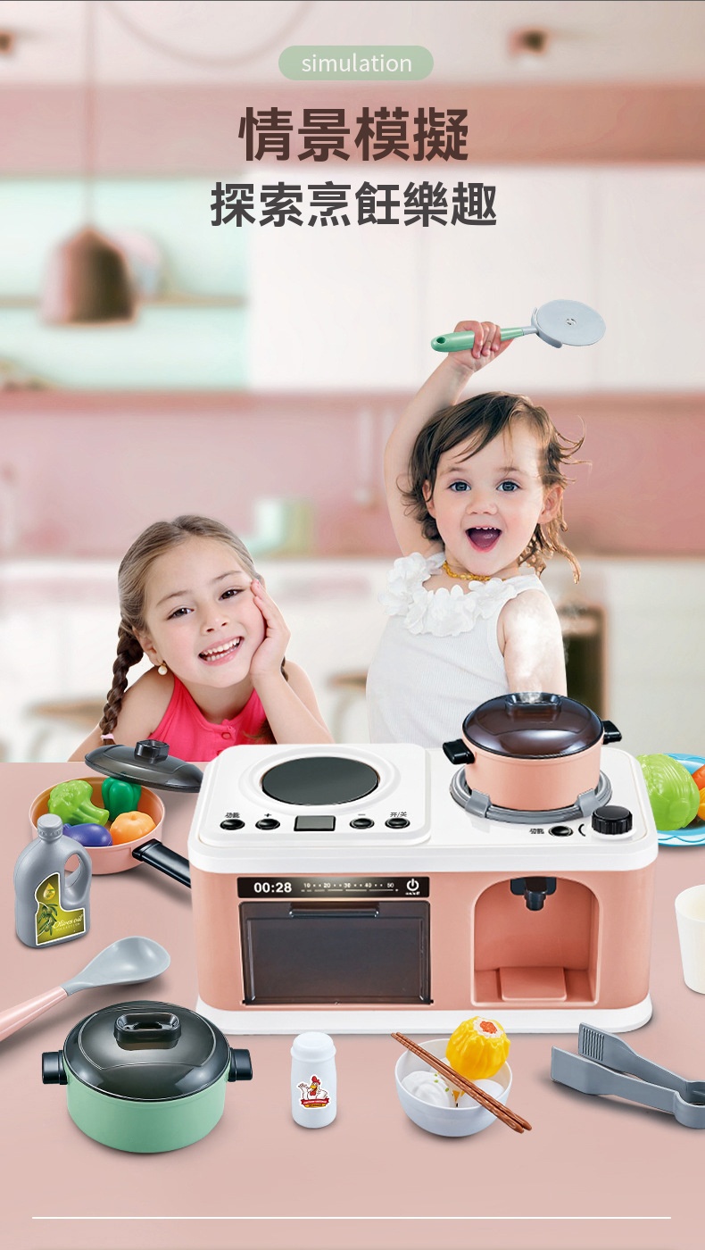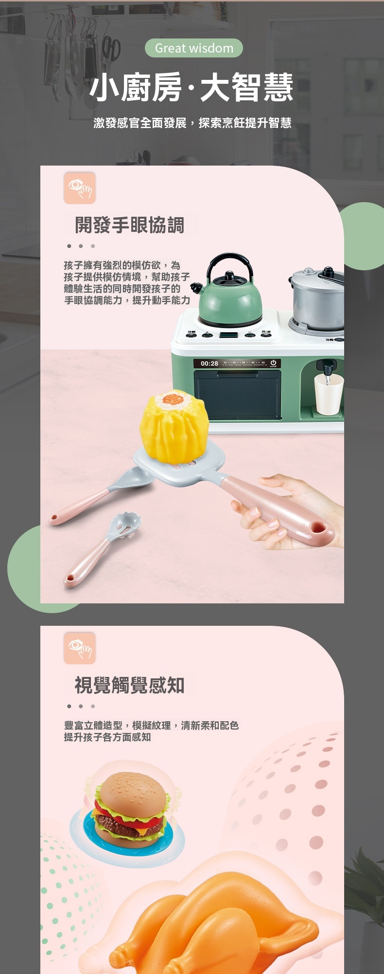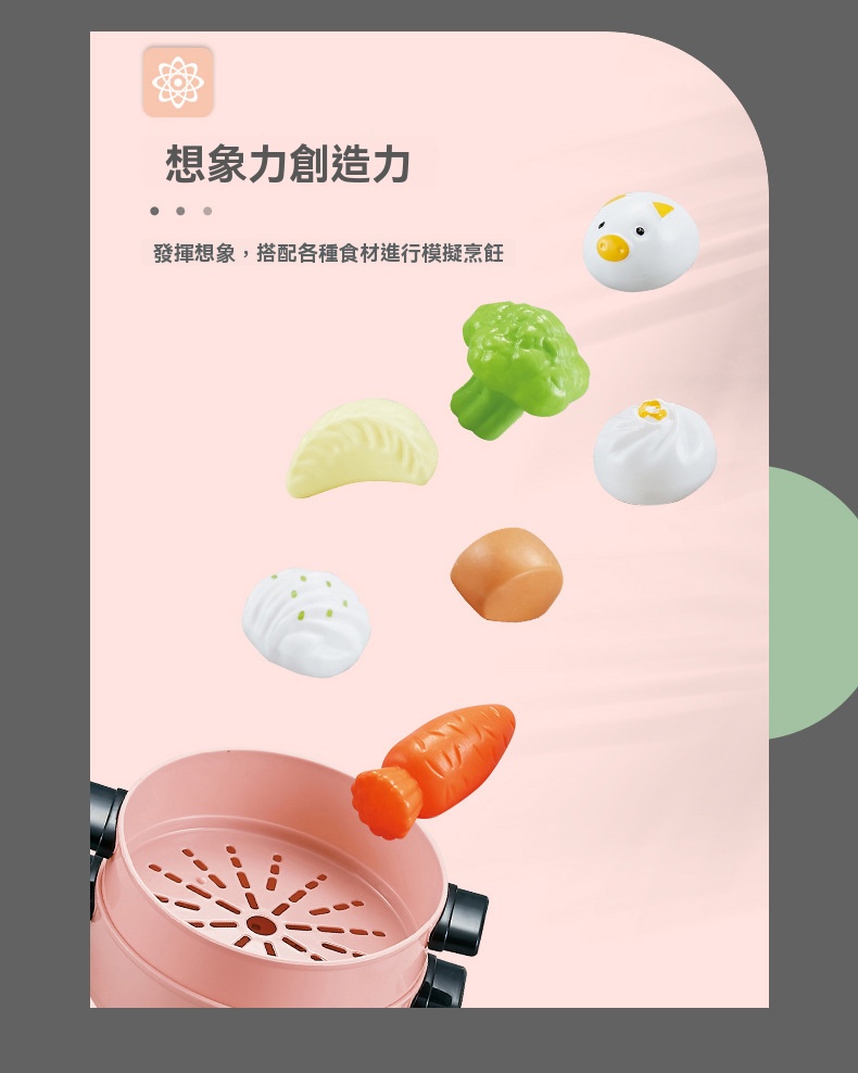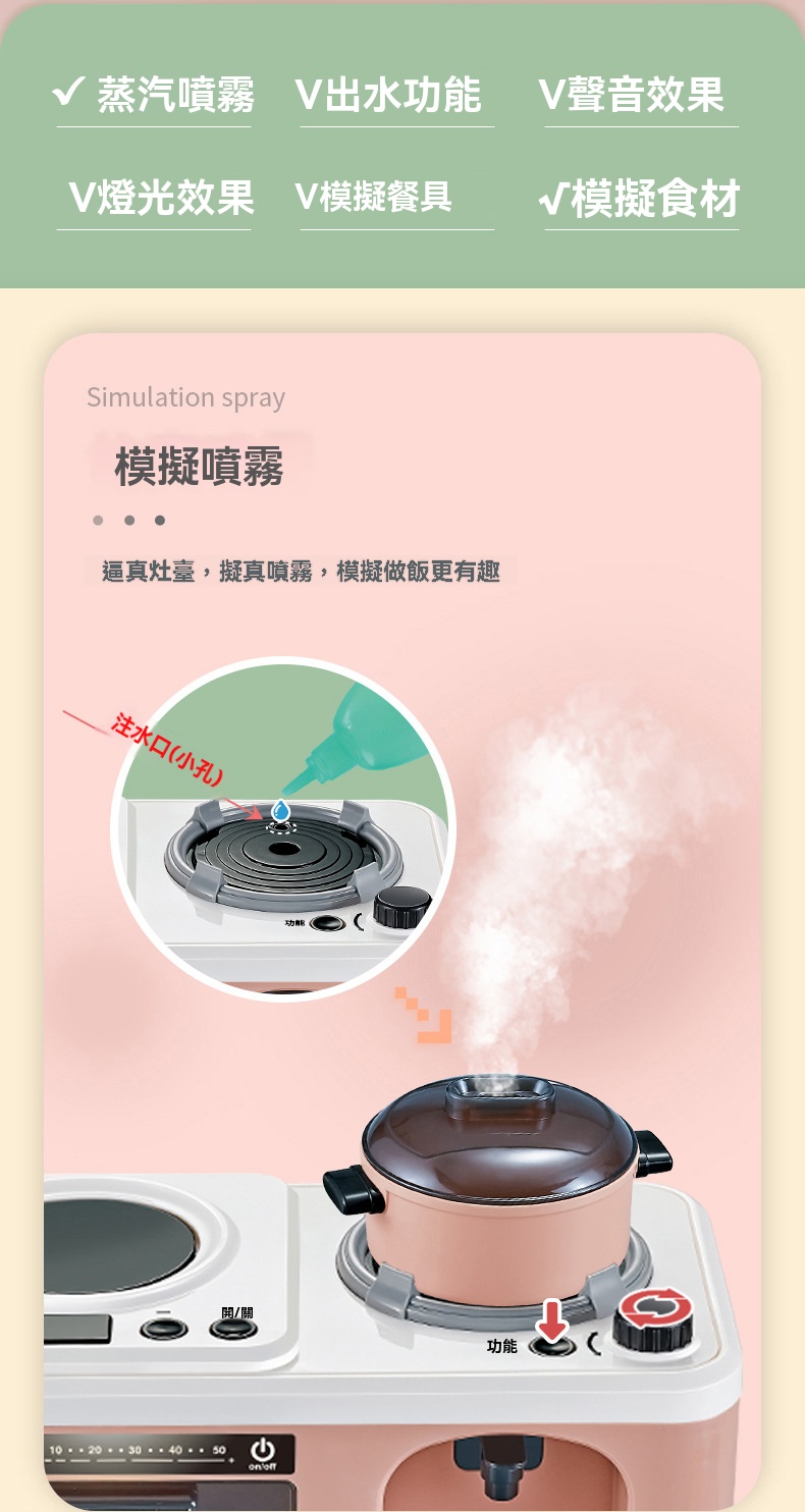 「兒童廚房升級✨這組噴霧小爐讓囝仔煮飯有煙有真相,玩到變身小廚神~」✨生活認知模仿探索 ✨人際互動 邏輯想象 ✨動手能力 模擬情景✨ 蒸汽噴霧出水功能 ✨聲音效果燈光效果✨模擬餐具 模擬食材