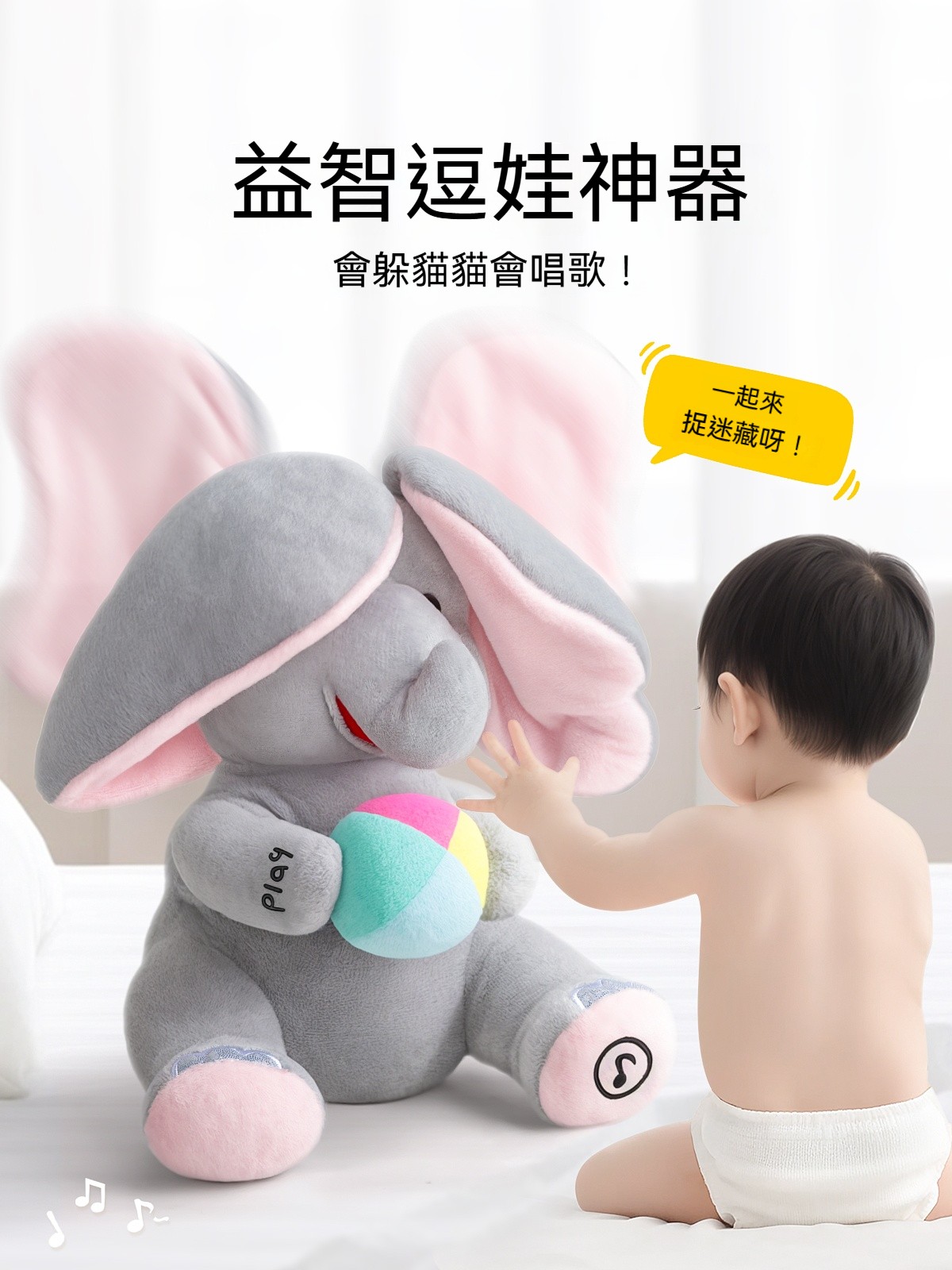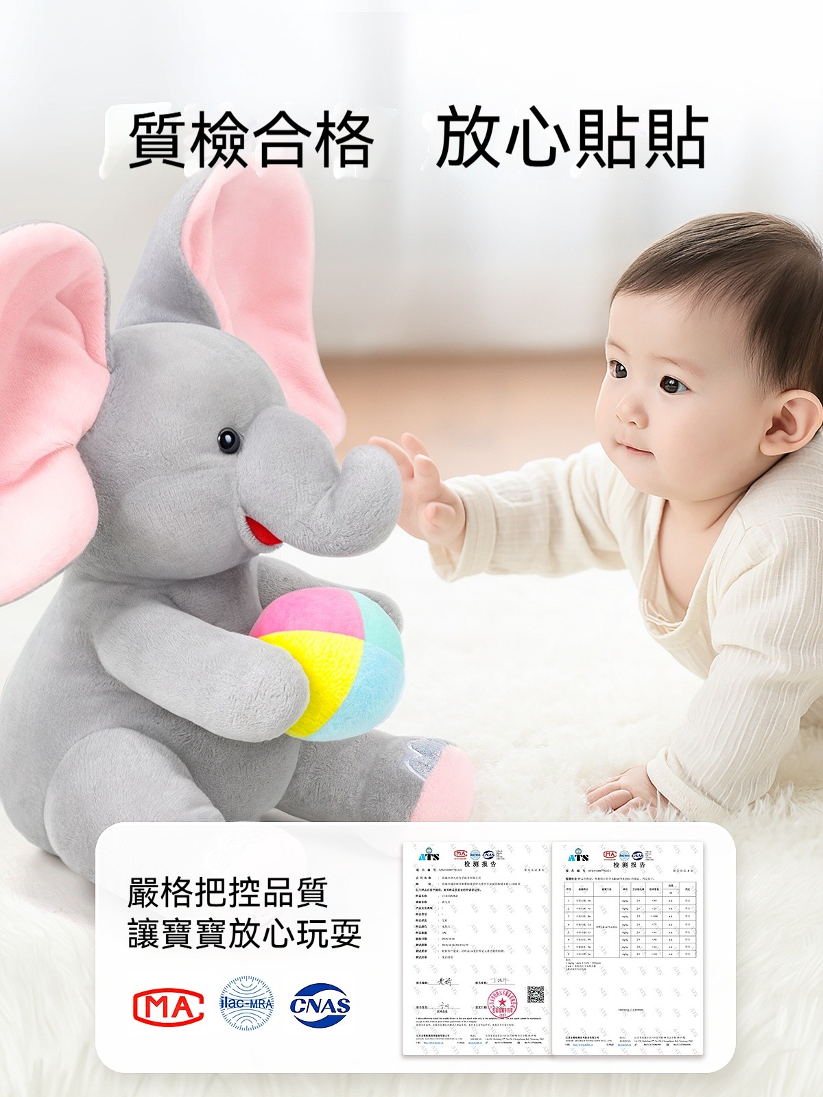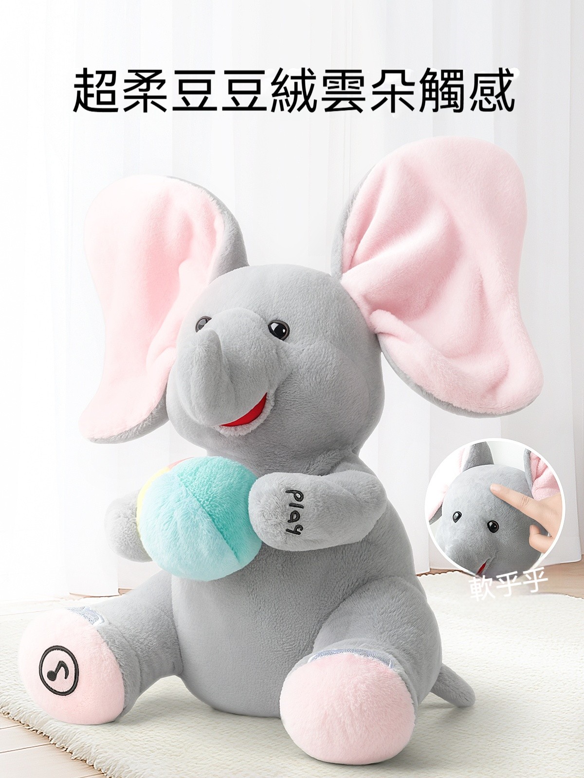 「✨寶寶的第一隻魔法大象!會躲貓貓會唱歌!+音樂安撫,嫩嬰看到直接笑出口水泡~✨」超柔豆豆绒雲朵觸感✨質檢合格 放心贴貼