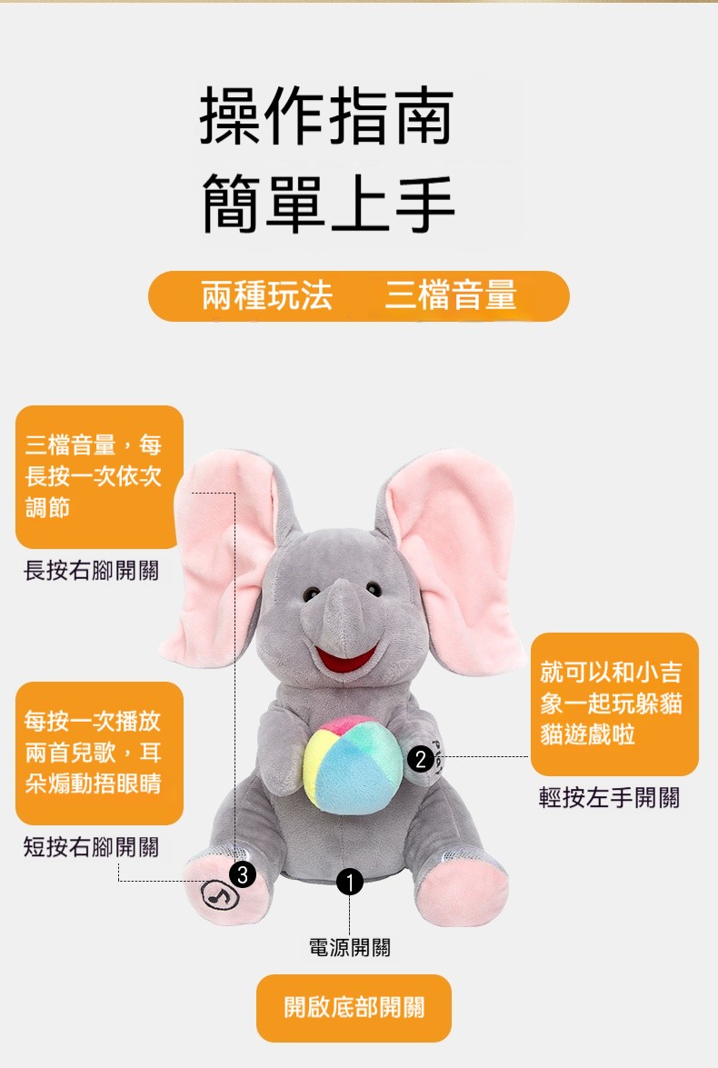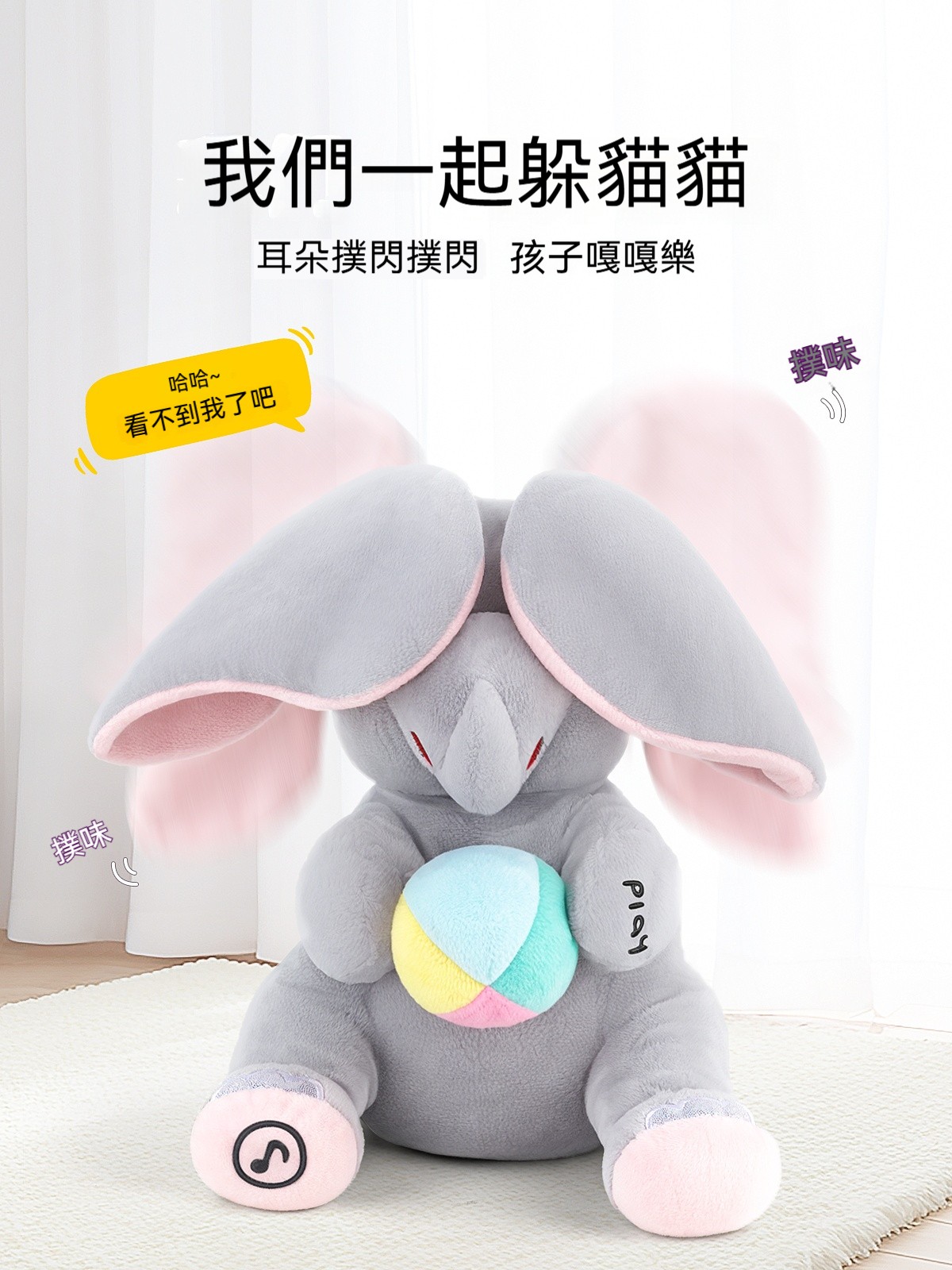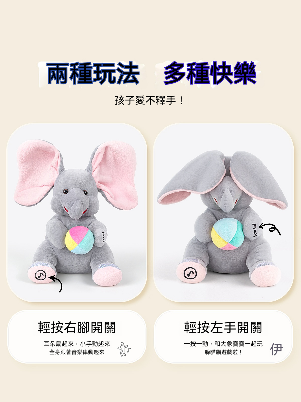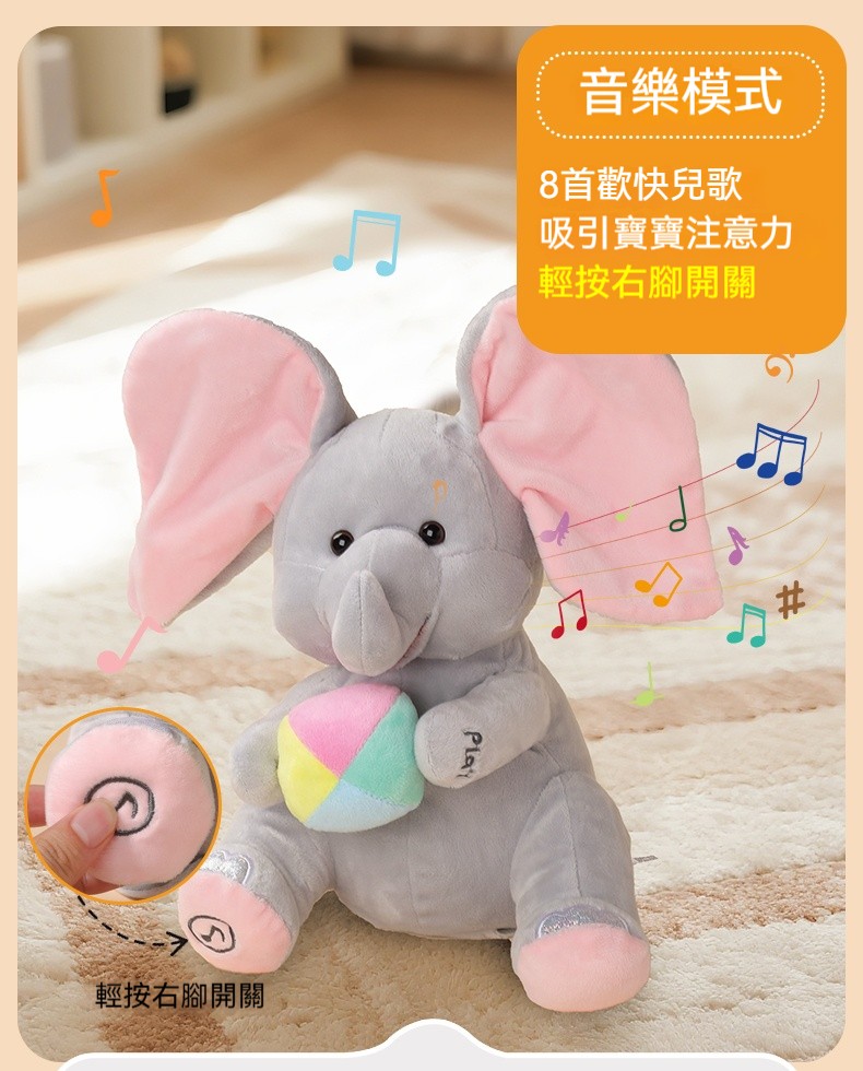 「✨寶寶的第一隻魔法大象!會躲貓貓會唱歌!+音樂安撫,嫩嬰看到直接笑出口水泡~✨」超柔豆豆绒雲朵觸感✨質檢合格 放心贴貼