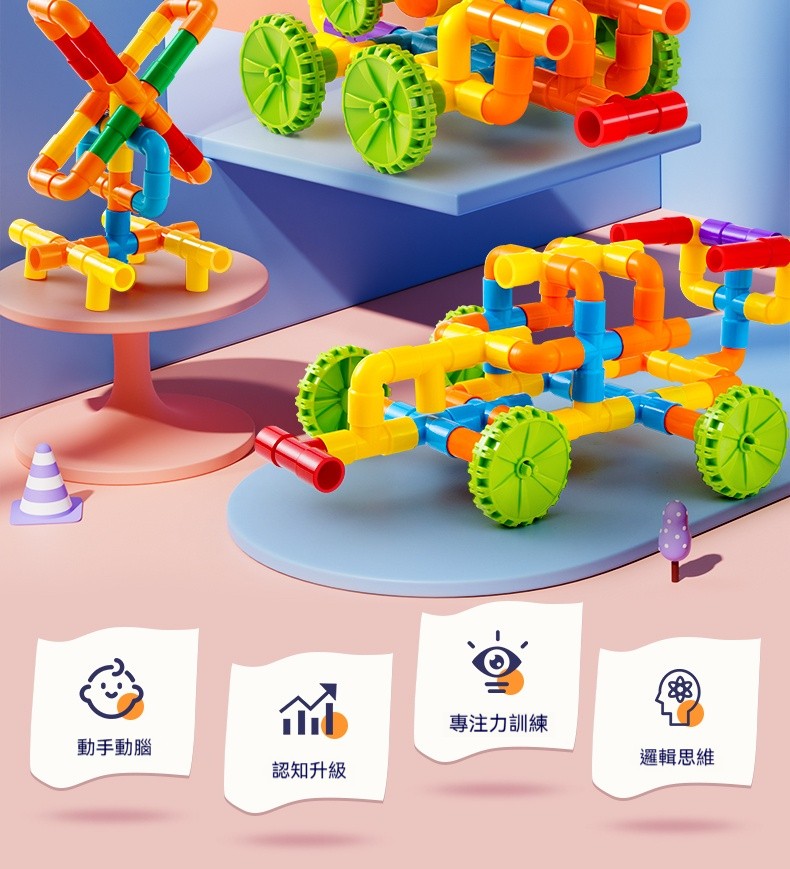 兒童水管積木大顆粒玩具益智拼裝拼插接益智3到6歲男女孩寶寶✨多造型拼接,豐富實實想象力 ✨多造型拼搭開發寶寶大腦智力✨
