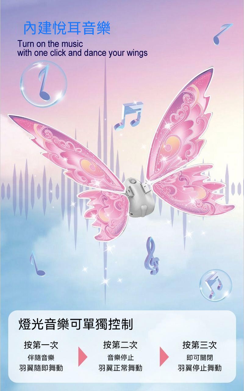 精靈會動天使玩具羽翼發光✨兒童電動翅膀蝴蝶背飾✨女孩花仙子禮物✨夜晚犹如萤火虫闪烁✨輕量化設計✨