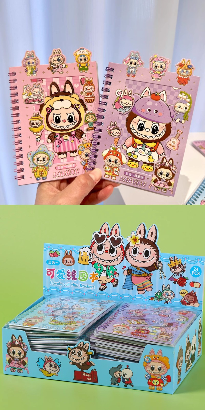 ✨全新可愛拉布布系列卡通可愛貼紙✨兒童可愛創意貼紙✨手帳素材貼紙本✨加厚紙板耐撕咬・推拉練手眼協調
